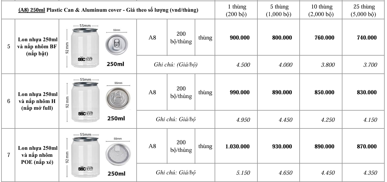 Báo Giá Lon Nhựa SSC Chi Phí Thấp Nhất